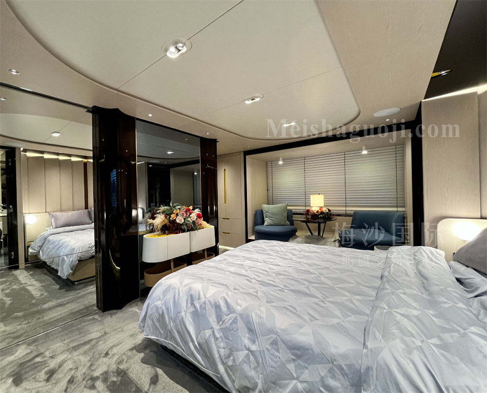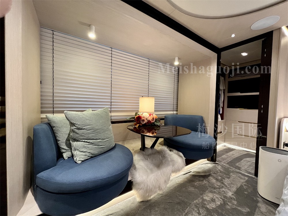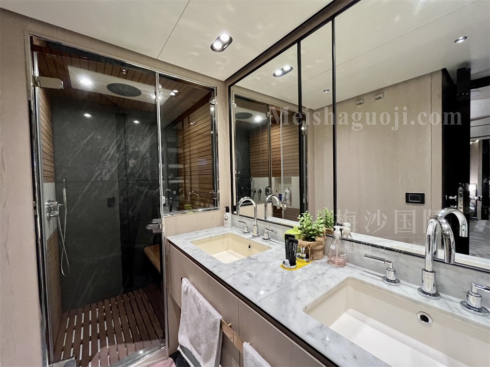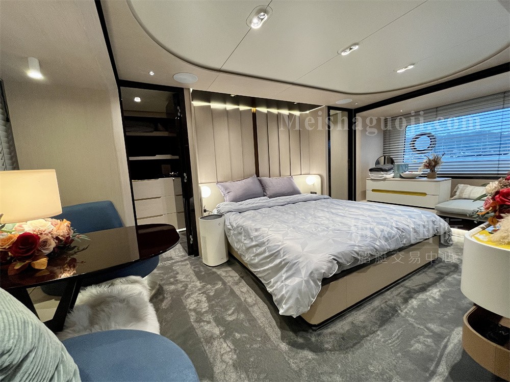 2019年产25米意大利Azimut Grande 25Metri豪华飞桥游艇,长:26.62米,宽:6.20米,两台MAN发动机共3300匹马力,使用1048小时,燃油舱容:7200升,淡水舱容:1100升,四个房间五个洗手间,沙龙区空间宽敞,带星空顶和酒水吧台