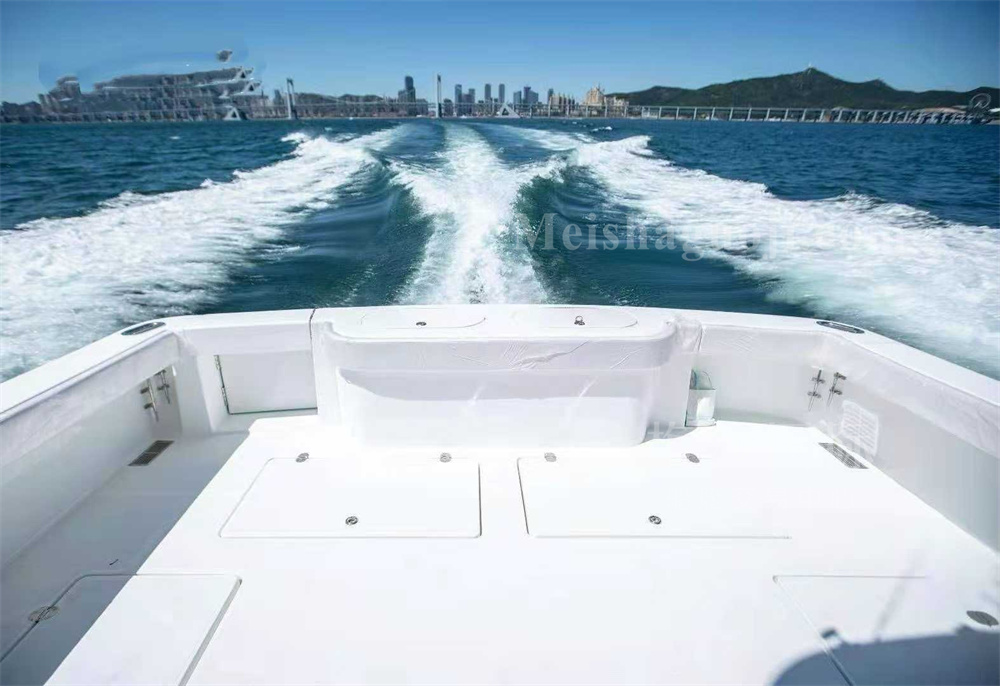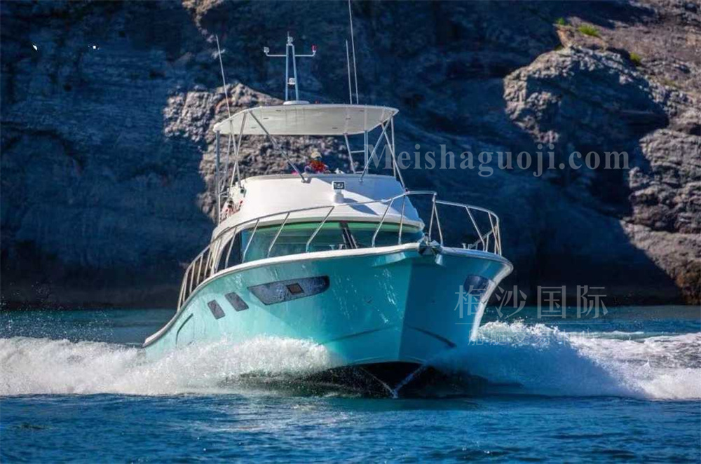 2021年产52尺百路威飞桥钓鱼艇,长:15.25米,宽:5米,两台VOLVO发动机共1450匹马力,使用2039小时,最高航速可达28节,燃油舱容:2800升,淡水舱容:300升,配备飞桥双驾驶台,专业钓舱