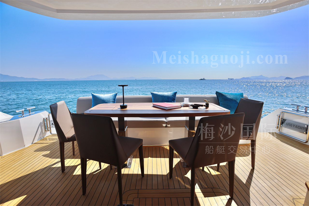 新船现货:AYANA 68尺豪华游艇,长:20.6米,宽:5.53米,燃油舱容:2800升,淡水舱容:1000升,一个房间两个洗手间带超大KTV包房和独立厨房