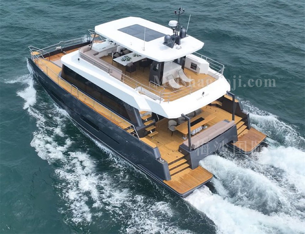 2023年产56尺豪华双体游艇,长:17.10米,宽:8.38米,两台VOLVO发动机共880匹马力,使用175小时,最高航速可达19节,一个房间一个洗手间,仅在内湖使用,保养佳,CCS三证齐全,可全国过户。
