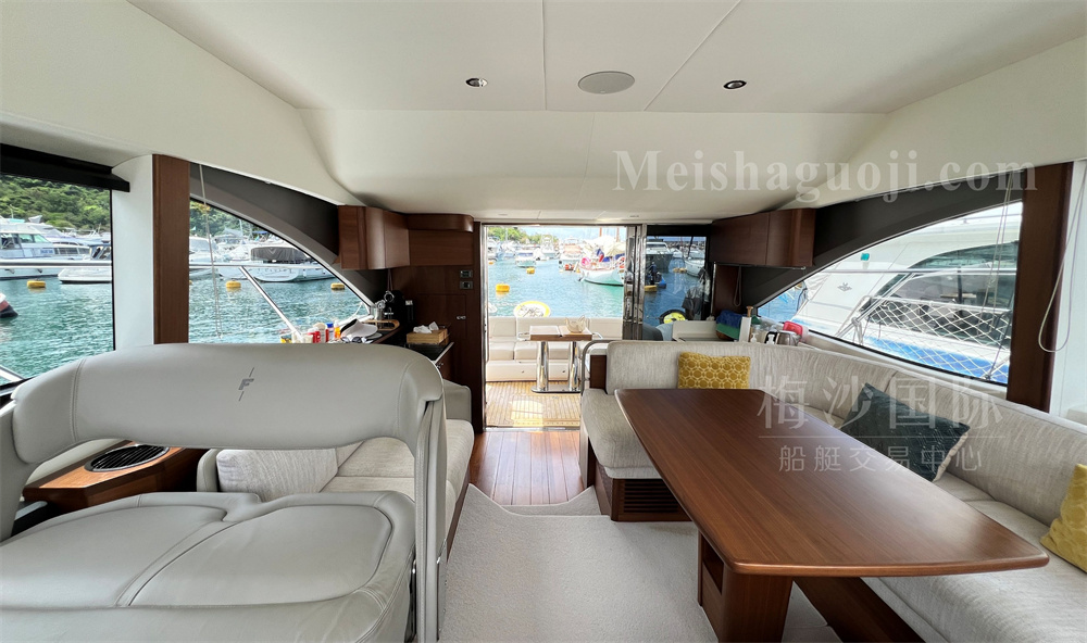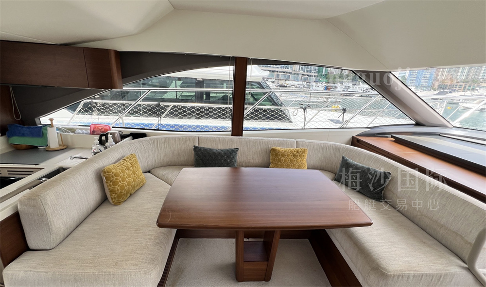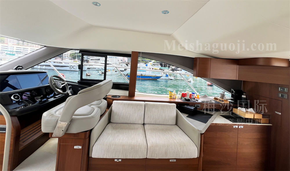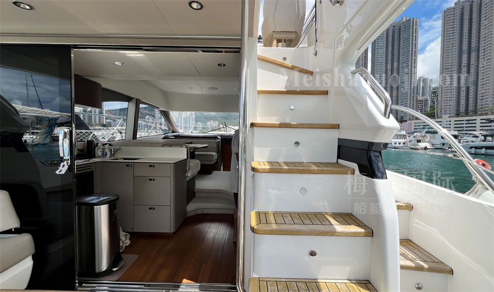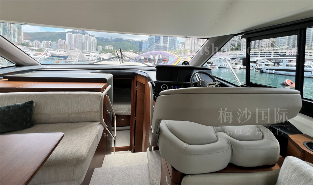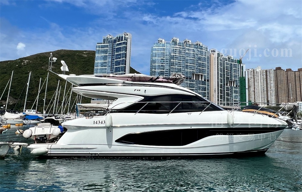 2019年产45尺英国Princess飞桥游艇,长:14.35米,宽:4.25米,两台VOLVO发动机共870匹马力,使用361小时,最高航速可达25节,燃油舱容:1640升,淡水舱容:487升,两个房间两个洗手间。