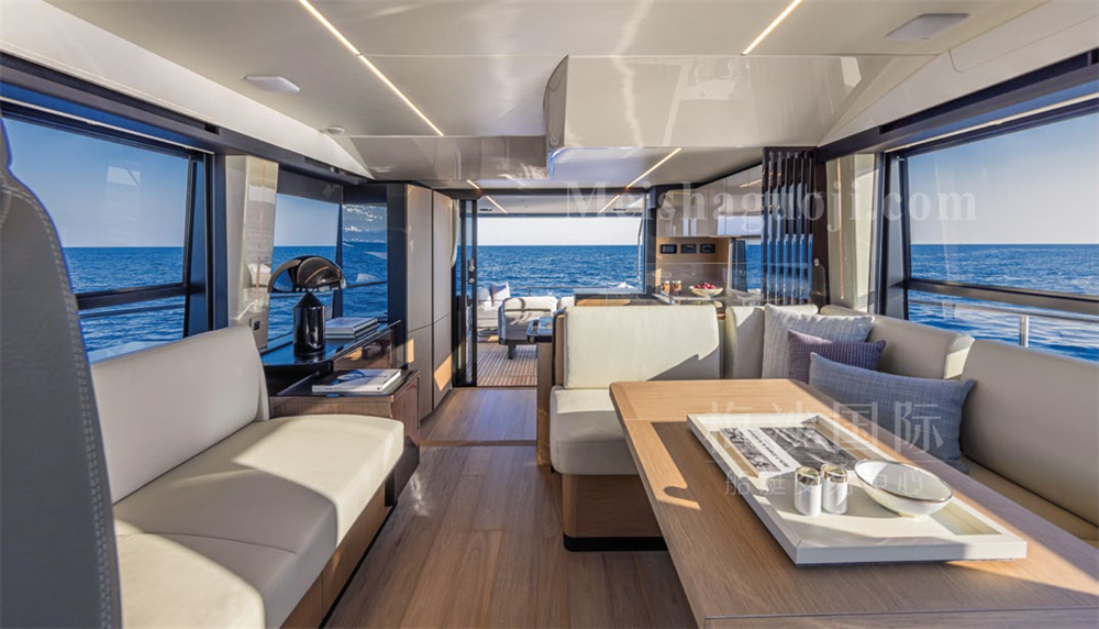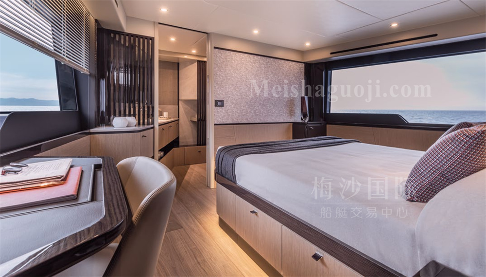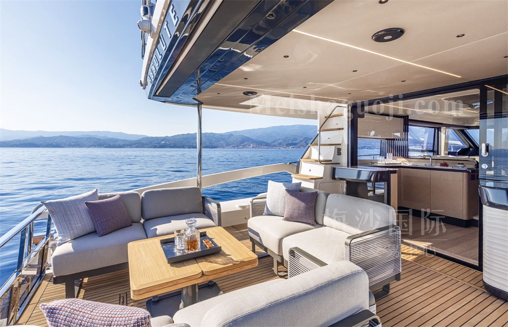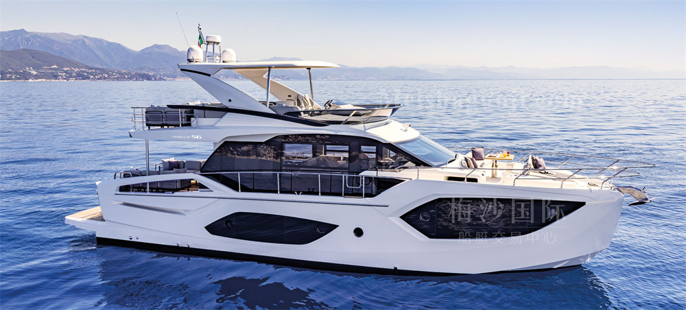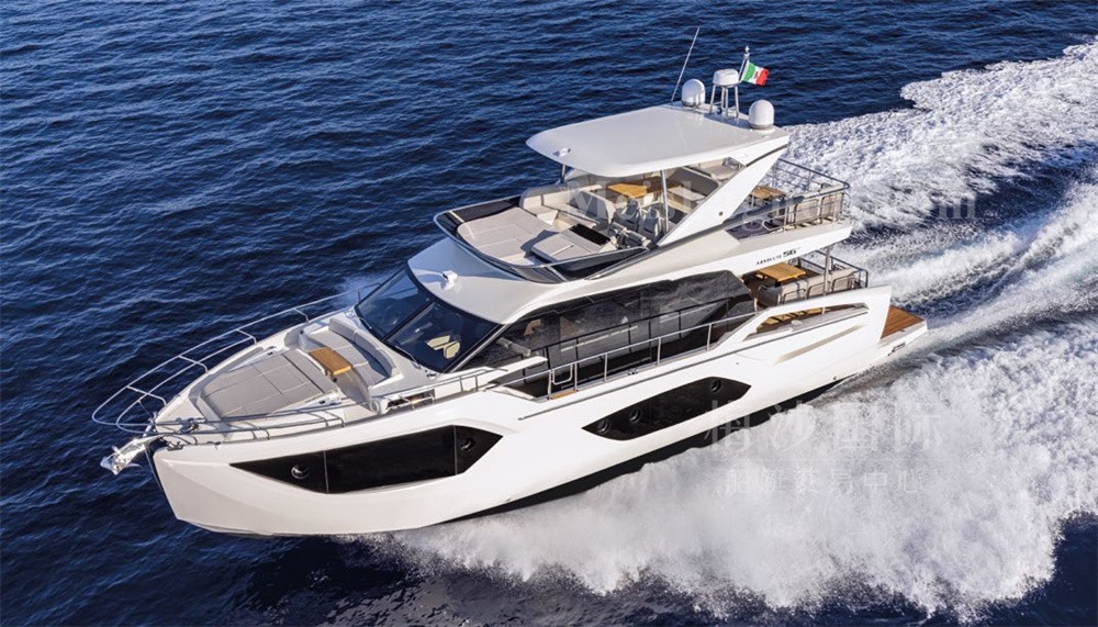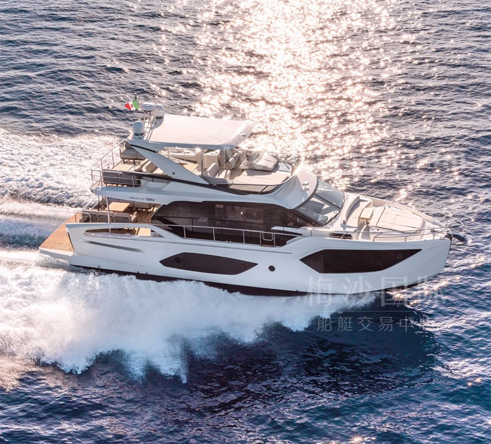 新船现货Absolute 56尺意大利飞桥游艇。长:17.64米,宽:4.79米,两台VOLVO发动机共1200匹马力,燃油舱容:2600升,淡水舱容:650升,四个房间四个洗手间,带开放式厨房,定制酒吧,硬顶内置太阳能板,可持续供电。