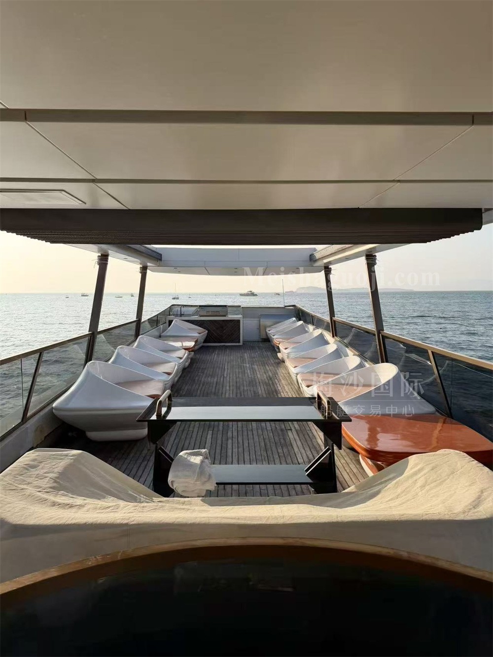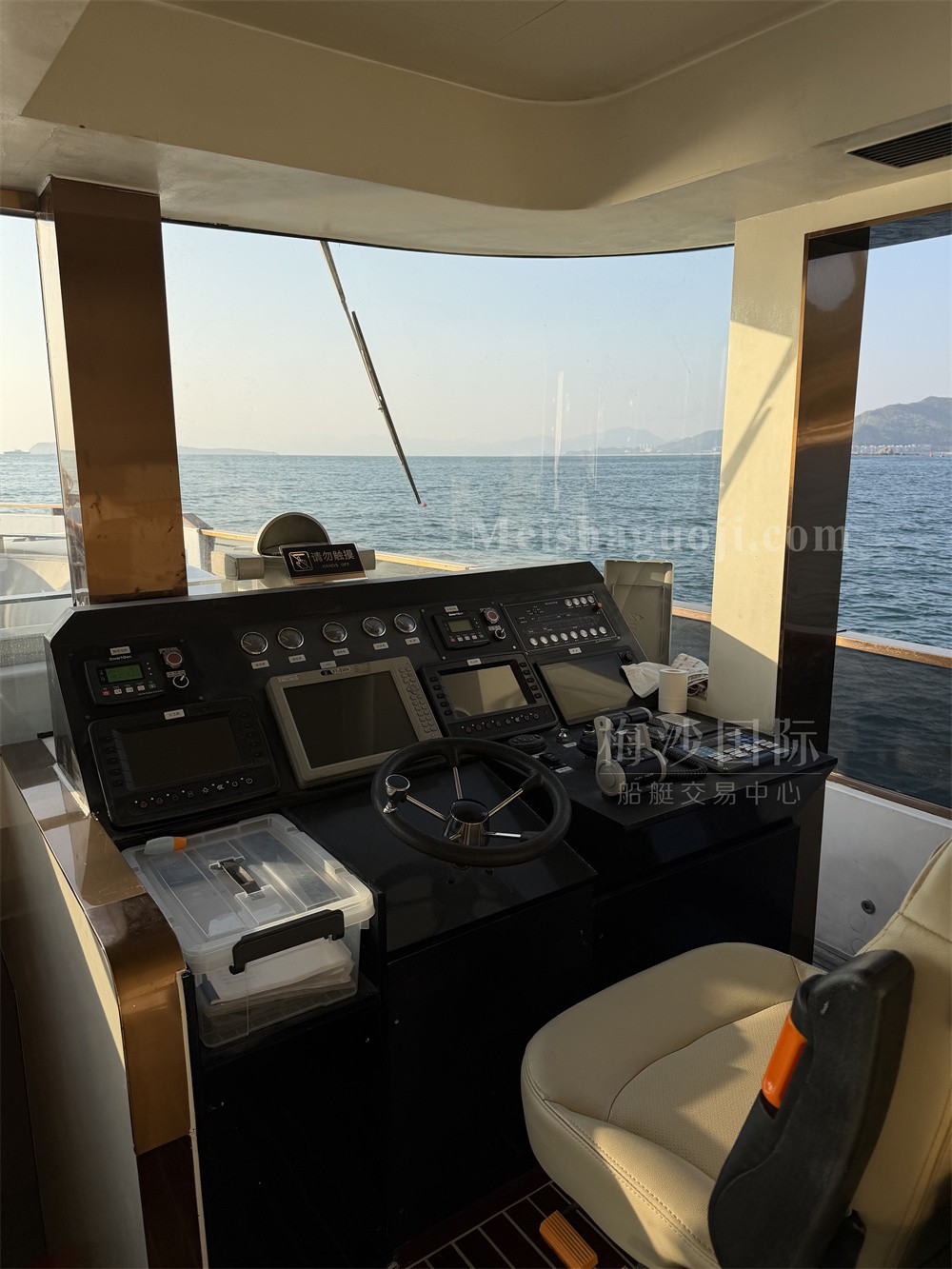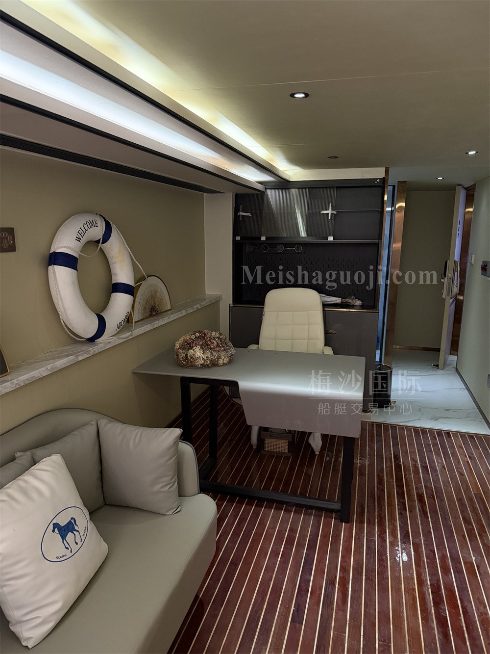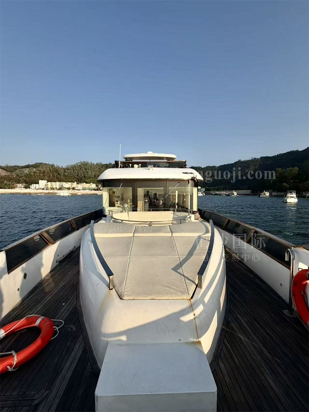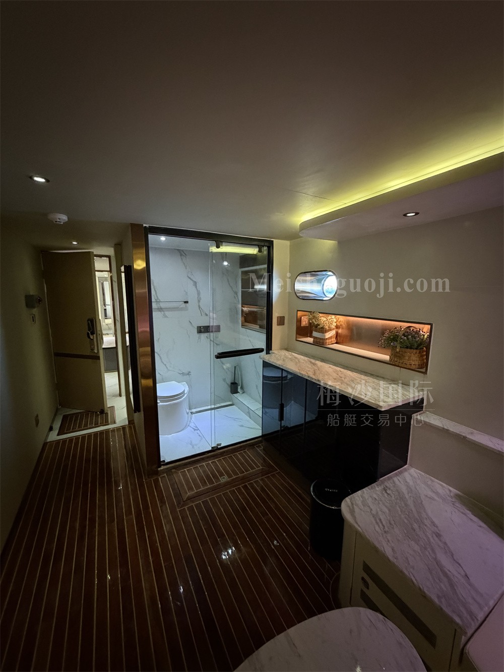 2024年产110尺国产豪华飞桥游艇,长:33.3米,宽:5.40米,两台潍柴发动机共1100匹马力,使用约80小时,内部装修豪华,带沙龙区超大酒水吧台,船况佳,CCS三证齐全,可全国过户。