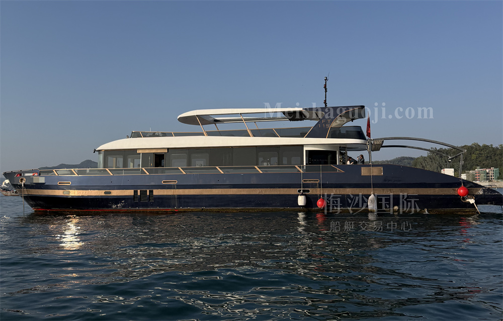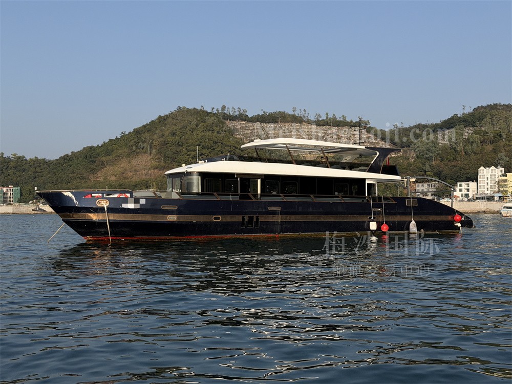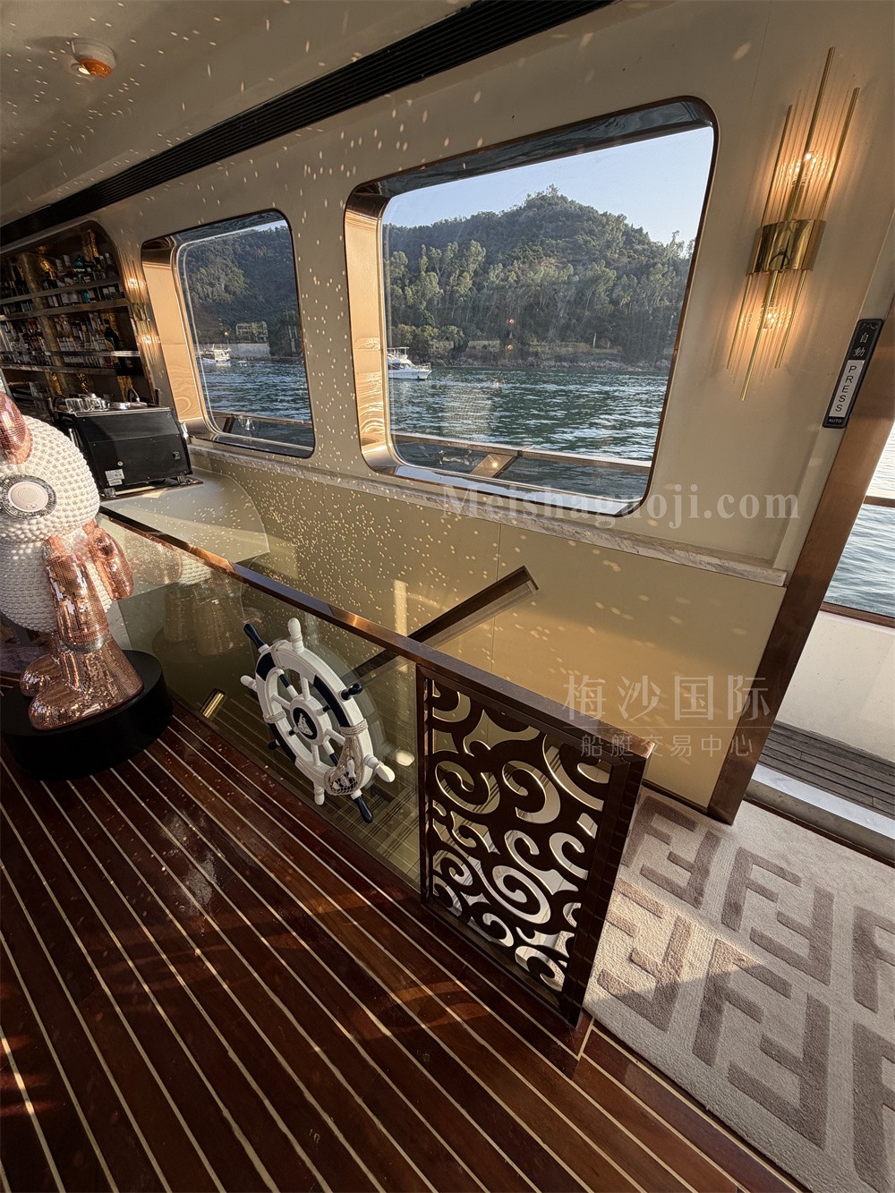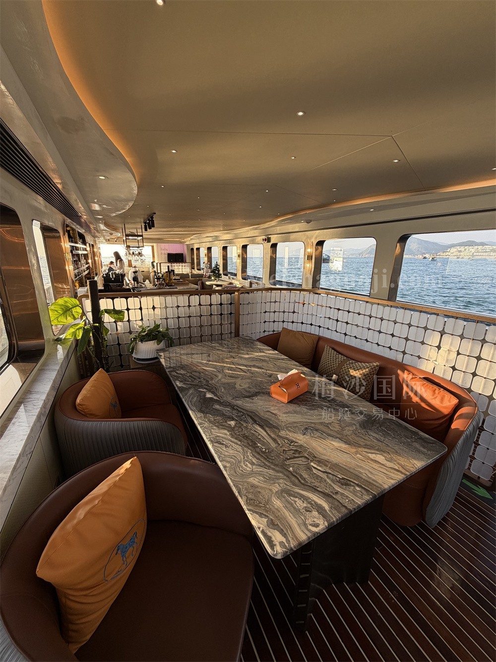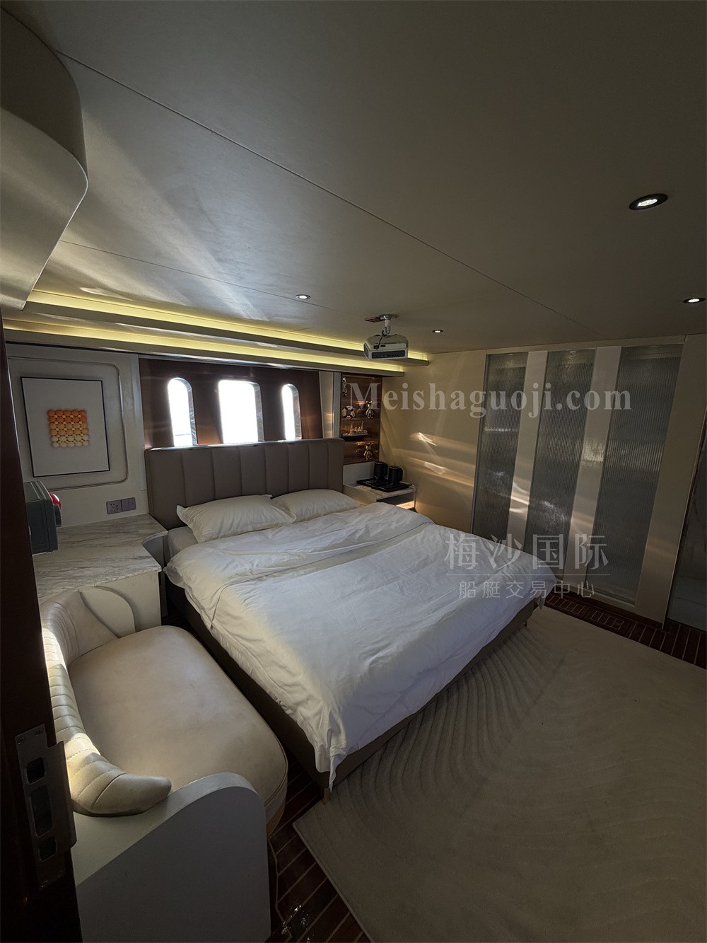 2024年产110尺国产豪华飞桥游艇,长:33.3米,宽:5.40米,两台潍柴发动机共1100匹马力,使用约80小时,内部装修豪华,带沙龙区超大酒水吧台,船况佳,CCS三证齐全,可全国过户。