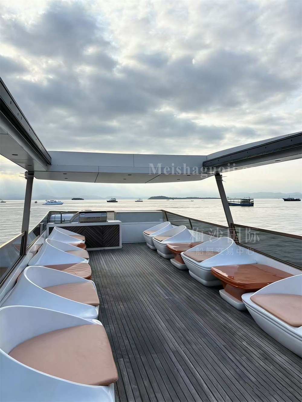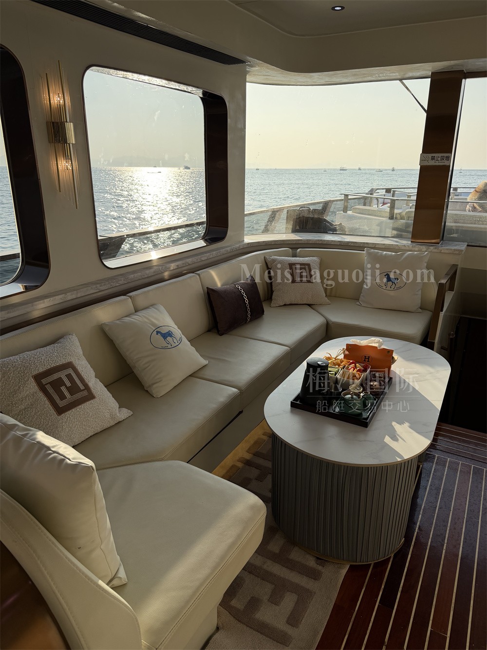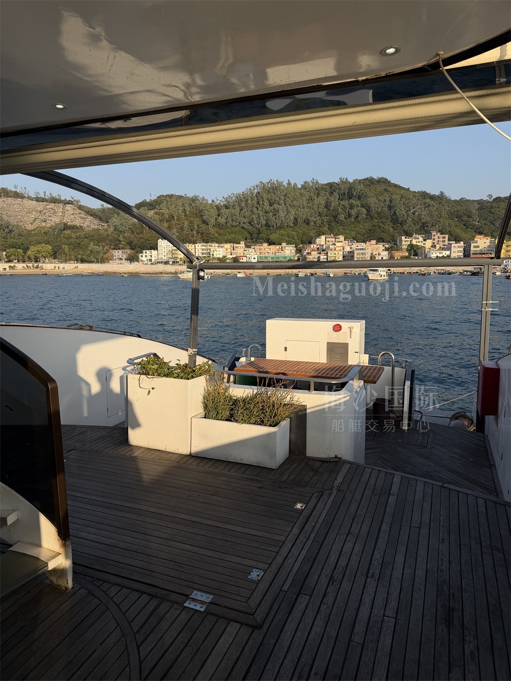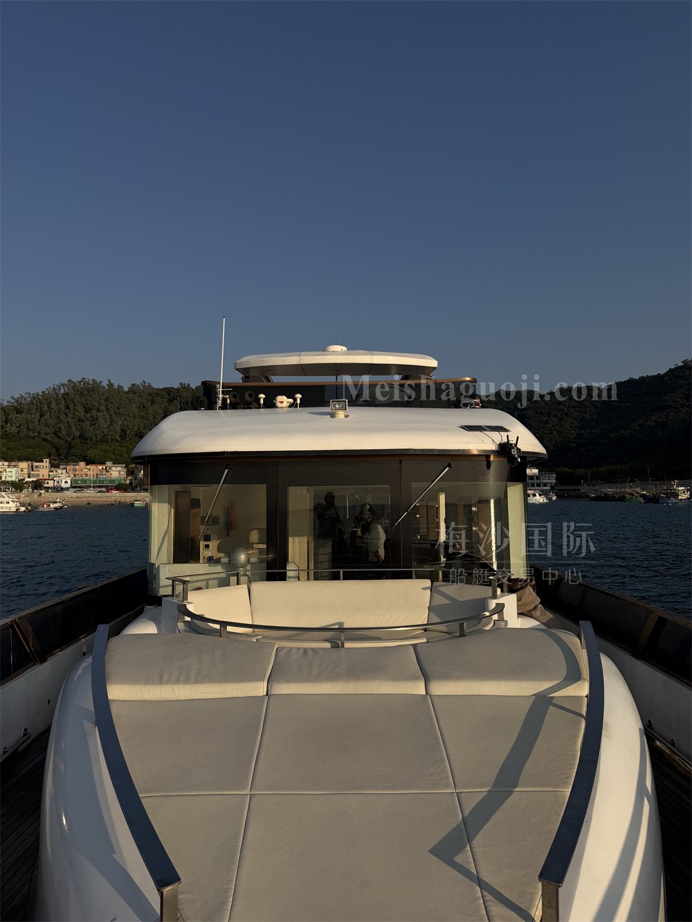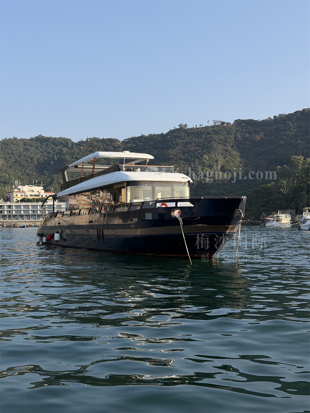 2024年产110尺国产豪华飞桥游艇,长:33.3米,宽:5.40米,两台潍柴发动机共1100匹马力,使用约80小时,内部装修豪华,带沙龙区超大酒水吧台,船况佳,CCS三证齐全,可全国过户。