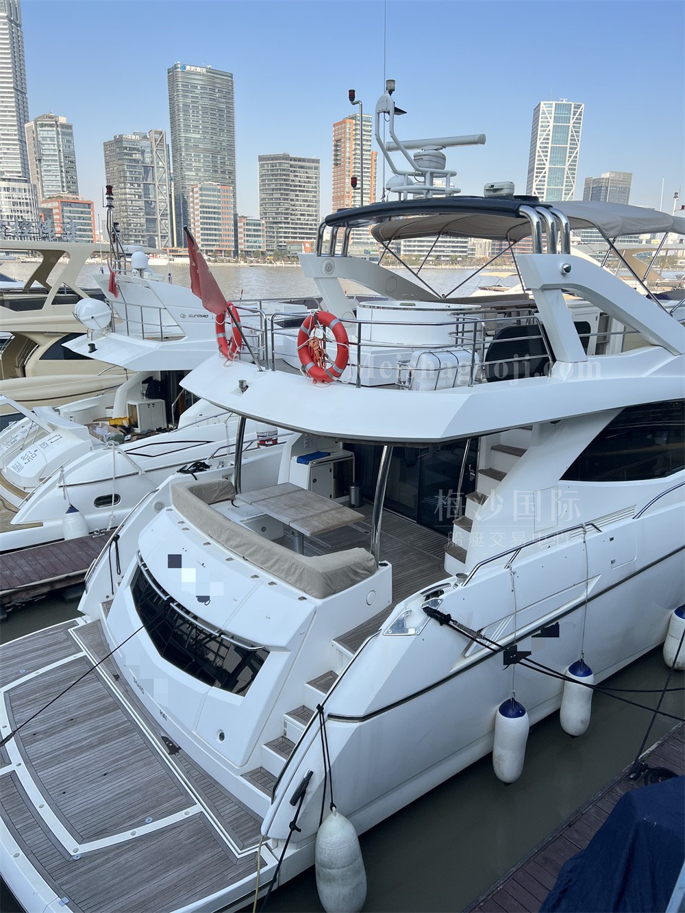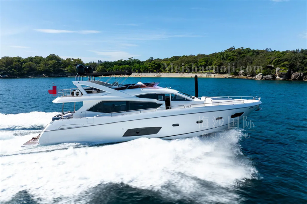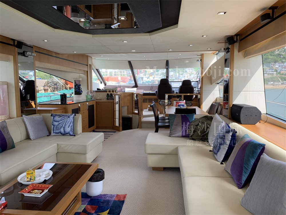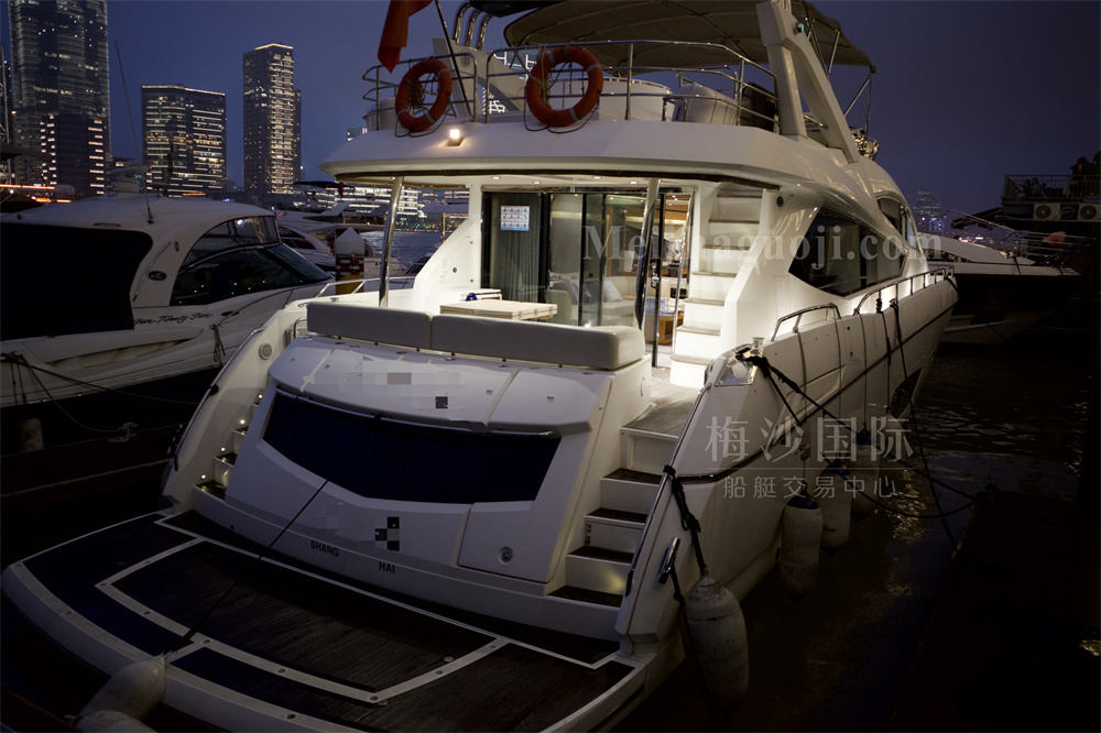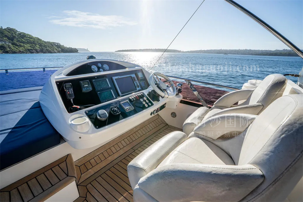 2011年产Sunseeker Manhattan 73尺英国豪华游艇,长:20.82米,宽:5.73米,两台MAN发动机共2720匹马力,使用618小时,燃油舱容:5000升,淡水舱容:1200升,三个房间,加大沙龙区空间宽敞,带陀螺仪和飞桥按摩浴缸。CCS三证齐全,可全国过户。