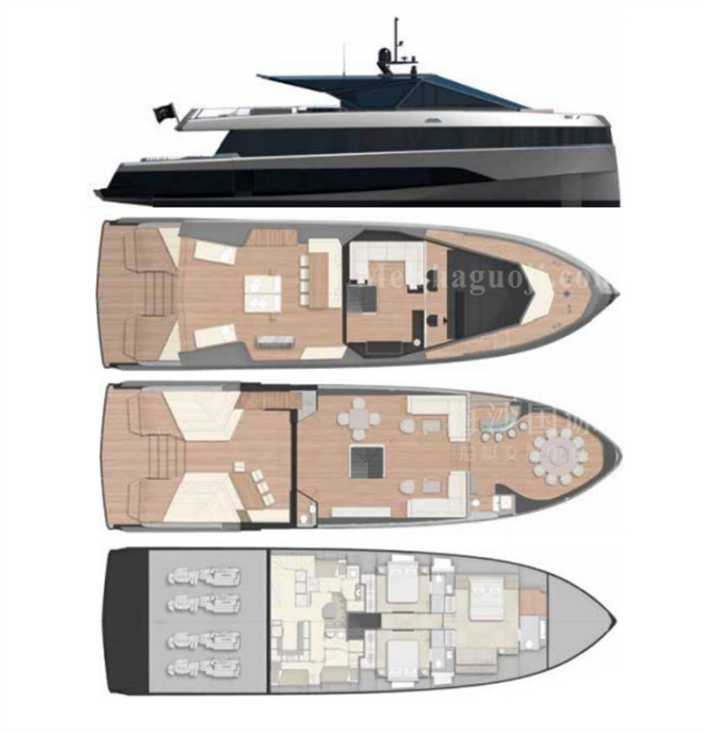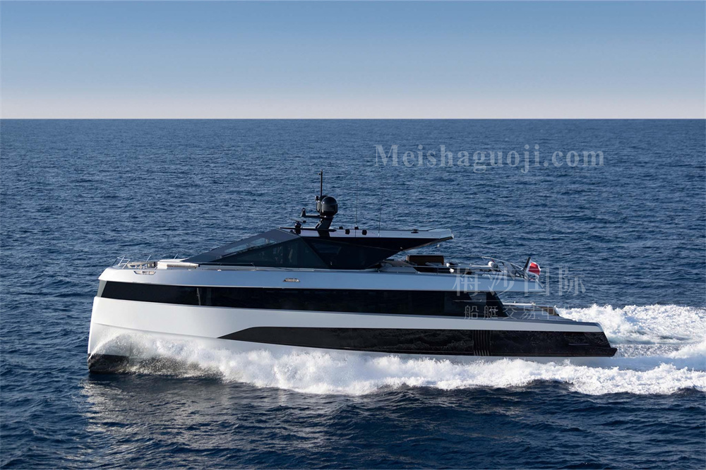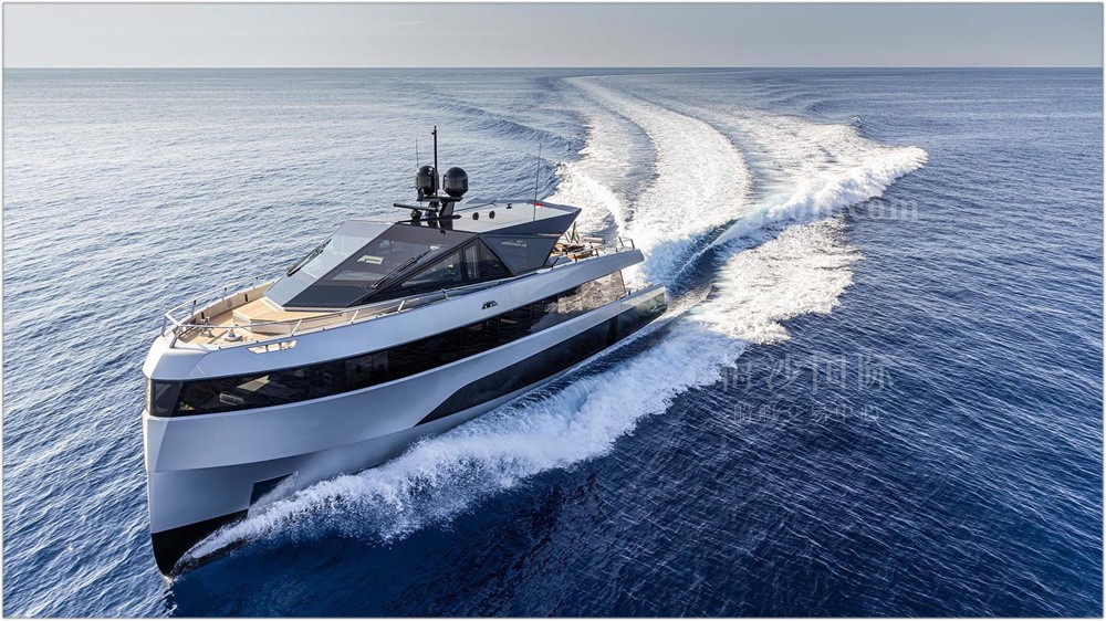 新船现货Wallywhy200 89尺意大利豪华游艇,长:27.03米,宽:7.66米,四台VOLVO发动机共5400匹马力,最高航速可达23节,燃油舱容:12000升,淡水舱容:2200升,三个房间五个洗手间,全宽体设计,带超大会客厅和日光浴区。