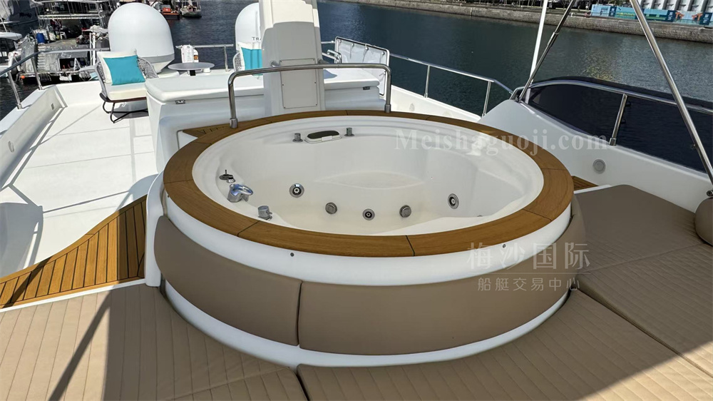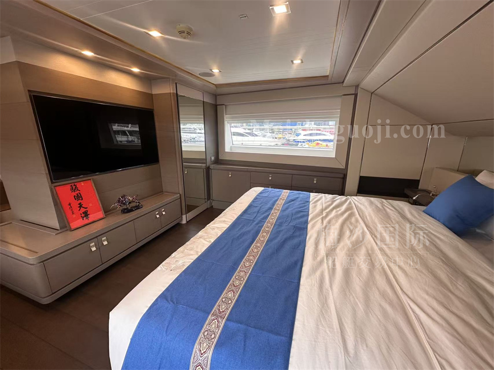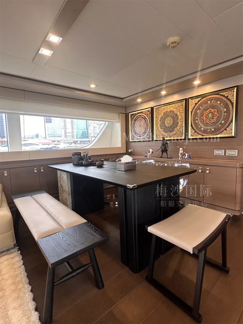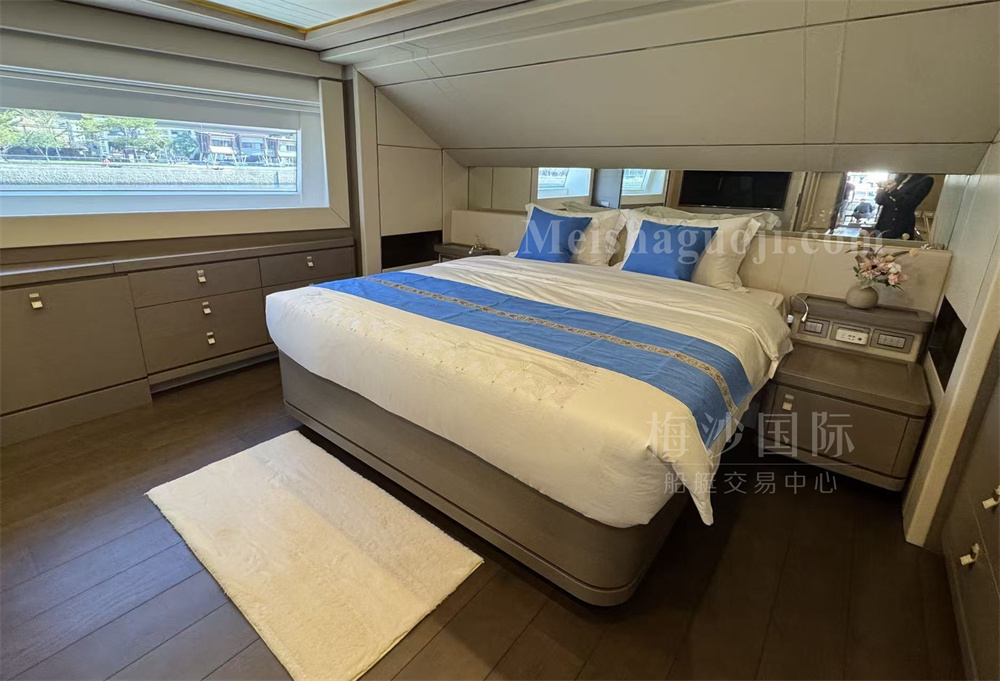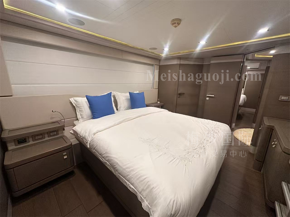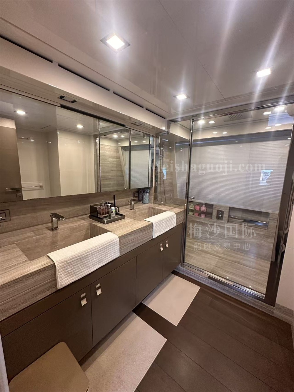2015年产法拉帝CustomLine Navetta 33米超级游艇,长:33米,宽:7米,吃水:2.57米,两台MAN发动机共2800匹马力,使用600小时,燃油舱容:17000升,淡水舱容:3250升,五个房间六个洗手间,沙龙区空间十分宽敞,内部装修豪华,带超大会客厅和按摩浴缸