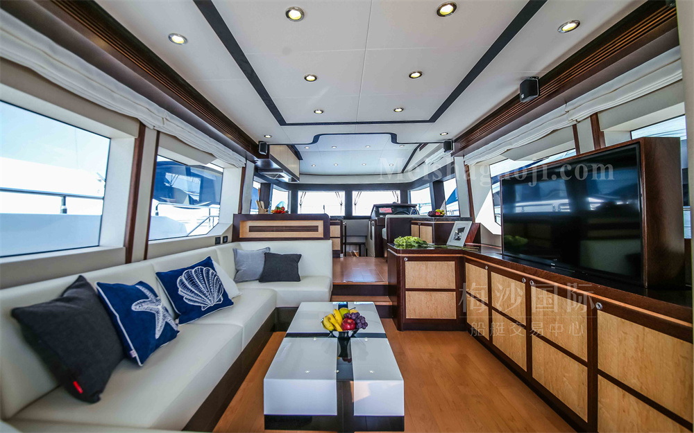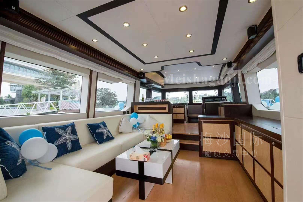 2017年产58尺Heysea豪华飞桥游艇,长:17.38米,宽:4.80米,两台康明斯发动机共1200匹马力,使用1200小时,燃油舱容:2500升,淡水舱容:600升,两个房间两个洗手间,带KTV室,配备雷达,GPS,AIS等,CCS三证齐全,可全国过户。